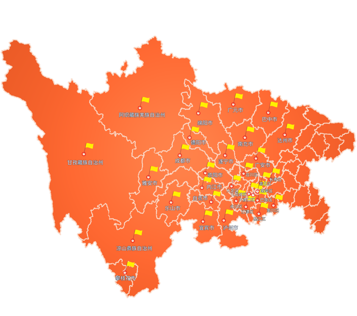 辐射巴中、成都、达州、雅安、攀枝花、泸州、重庆等22个市州地区